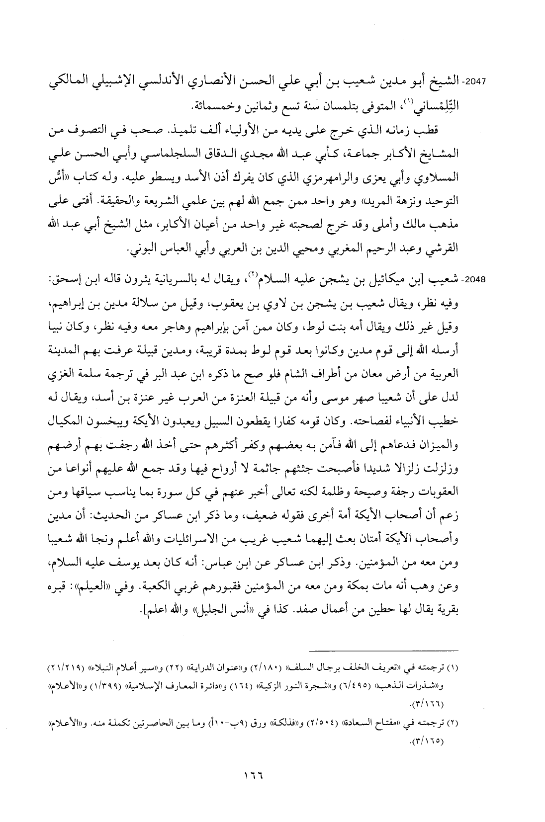 2047 - الشيخ أبو مدين شعيب بن أبي علي الحسن الأنصاري الأندلسي الإشبيلي المالكي التِّلِمْساني (¬1)، المتوفى بتلمسان سنة تسع وثمانين وخمسمائة.
