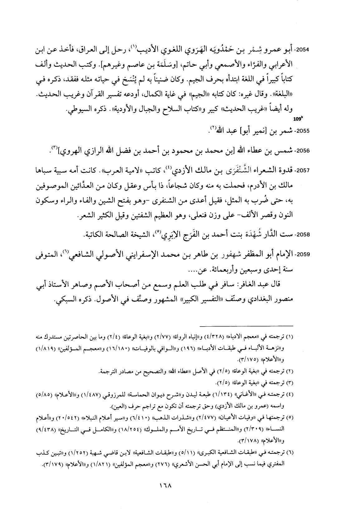 2059 - الإمام أبو المظفر شهفور بن طاهر بن محمد الإسفرايني الأصولي الشافعي (¬6)، المتوفى سنة إحدى وسبعين وأربعمائة. عن ....