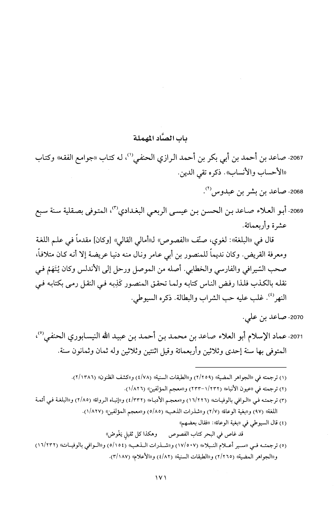 2067 - صاعد بن أحمد بن أبي بكر بن أحمد الرازي الحنفي (¬1)، له كتاب "جوامع الفقه" وكتاب "الأحساب والأنساب". ذكره تقي الدين.