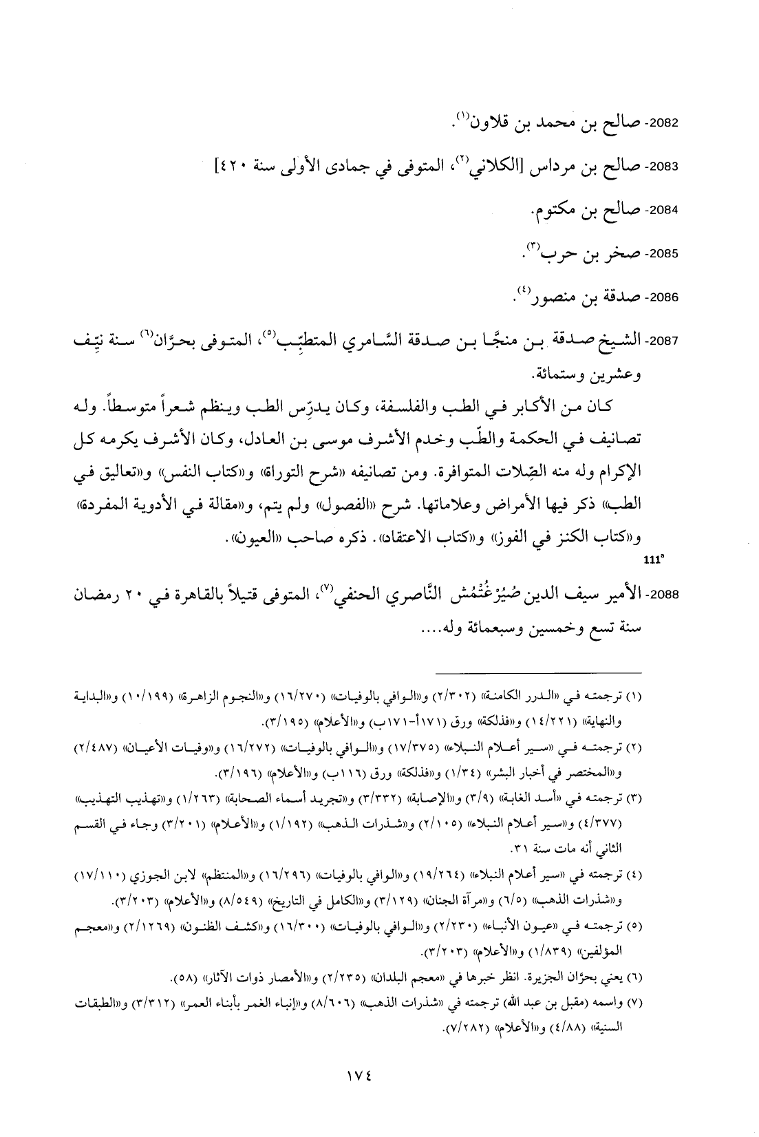 2087 - الشيخ صدقة بن منجَّا بن صدقة السَّامري المتطبِّب (¬5)، المتوفى بحرَّان (¬6) سنة نيِّف وعشرين وستمائة.