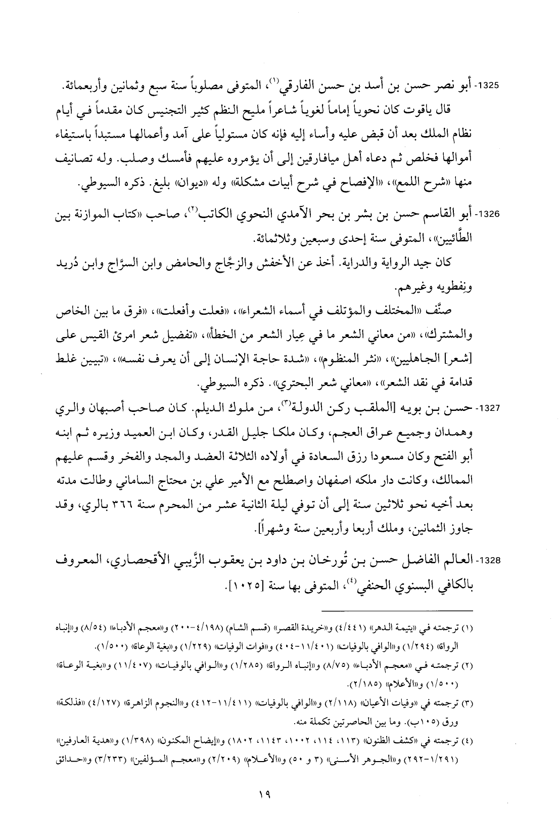 1326 - أبو القاسم حسن بن بشر بن بكر الآمدي النحوي الكاتب (¬2)، صاحب "كتاب الموازنة بين الطَّائيين"، المتوفى سنة إحدى وسبعين وثلاثمائة.