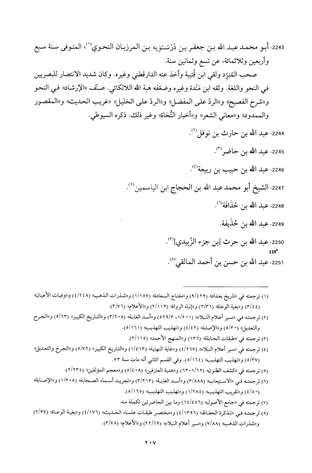 2243 - أبو محمد عبد الله بن جعفر بن دُرُسْتَوَيه بن المرزبان النحوي (¬1)، المتوفى سنة سبع وأربعين وثلاثمائة، عن تسع وثمانين سنة.