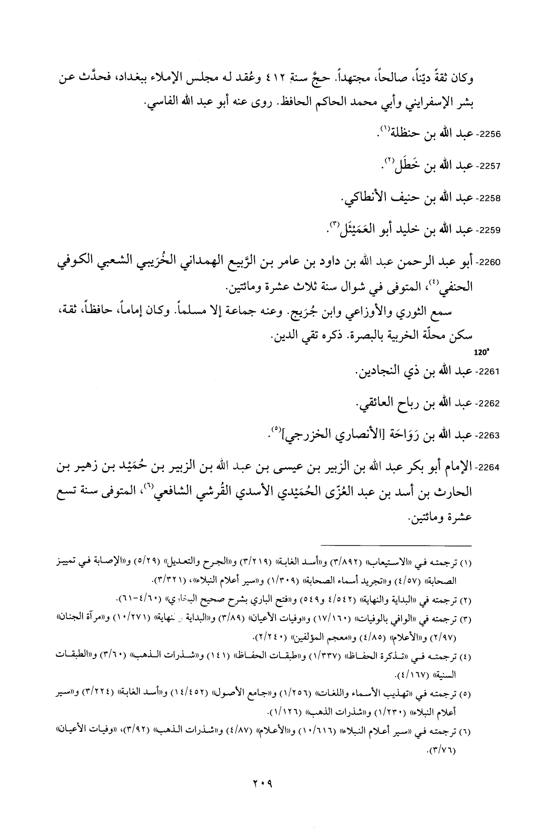 2264 - الإمام أبو بكر عبد الله بن الزبير بن عيسى بن عبد الله بن الزبير بن حُمَيْد بن زهير بن الحارث بن أسد بن عبد العُزّى الحُمَيْدي الأسدي القُرشي الشافعي (¬6)، المتوفى سنة تسع عشرة ومائتين.