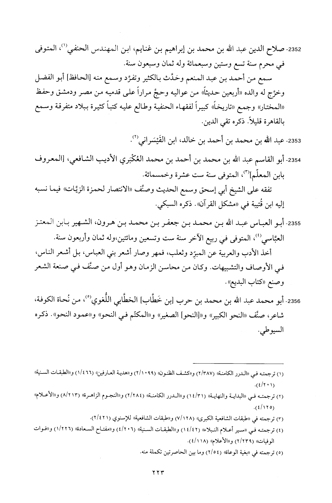 2352 - صلاح الدين عبد الله بن محمد بن إبراهيم بن غنايم، ابن المهندس الحنفي (1)، المتوفى في محرم سنة تسع وستين وسبعمائة وله ثمان وسبعون سنة.