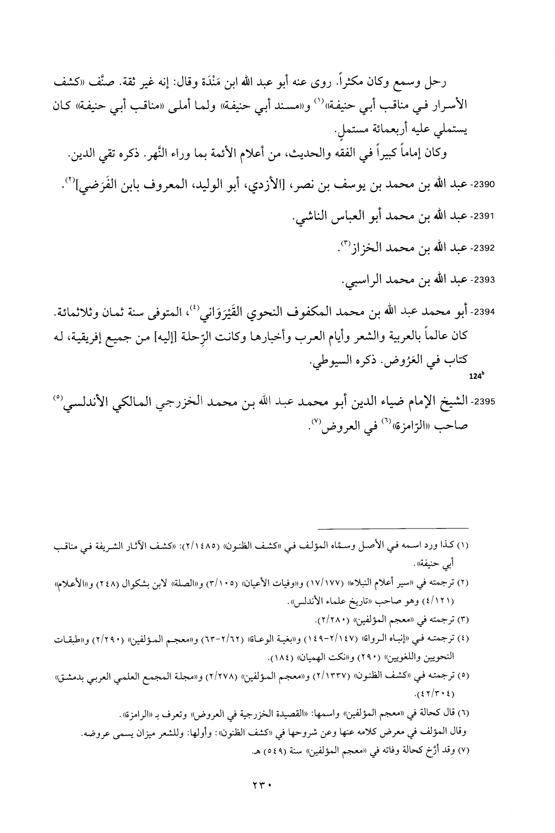 2395 - الشيخ الإمام ضياء الدين أبو محمد عبد الله بن محمد الخزرجي المالكي الأندلسي (¬5) صاحب "الرّامزة" (¬6) في العروض (¬7).