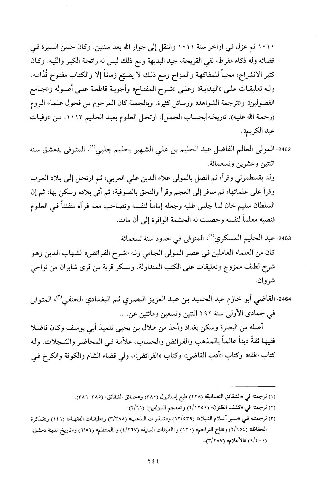 2462 - المولى العالم الفاضل عبد الحليم بن علي الشهير بحليم جلبي (¬1)، المتوفى بدمشق سنة اثنتين وعشرين وتسعمائة.