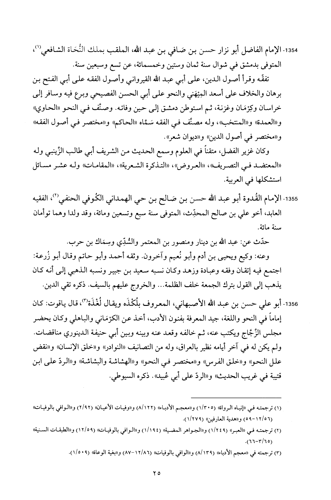 1354 - الإمام الفاضل أبو نزار حسن بن صافي بن عبد الله، الملقب بملك النُّحَاة الشافعي (¬1)، المتوفى بدمشق في شوال سنة ثمان وستين وخمسمائة، عن تسع وسبعين سنة.