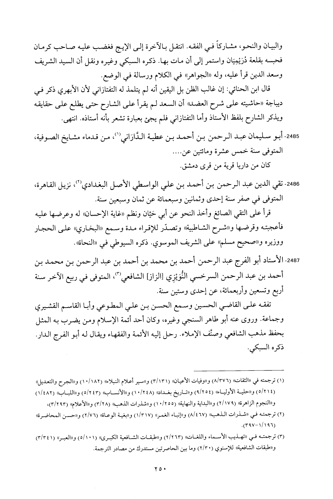 2485 - أبو سليمان عبد الرحمن بن أحمد بن عطية الدَّارَاني (¬1)، من قدماء مشايخ الصوفية، المتوفى سنة خمس عشرة ومائتين عن ....