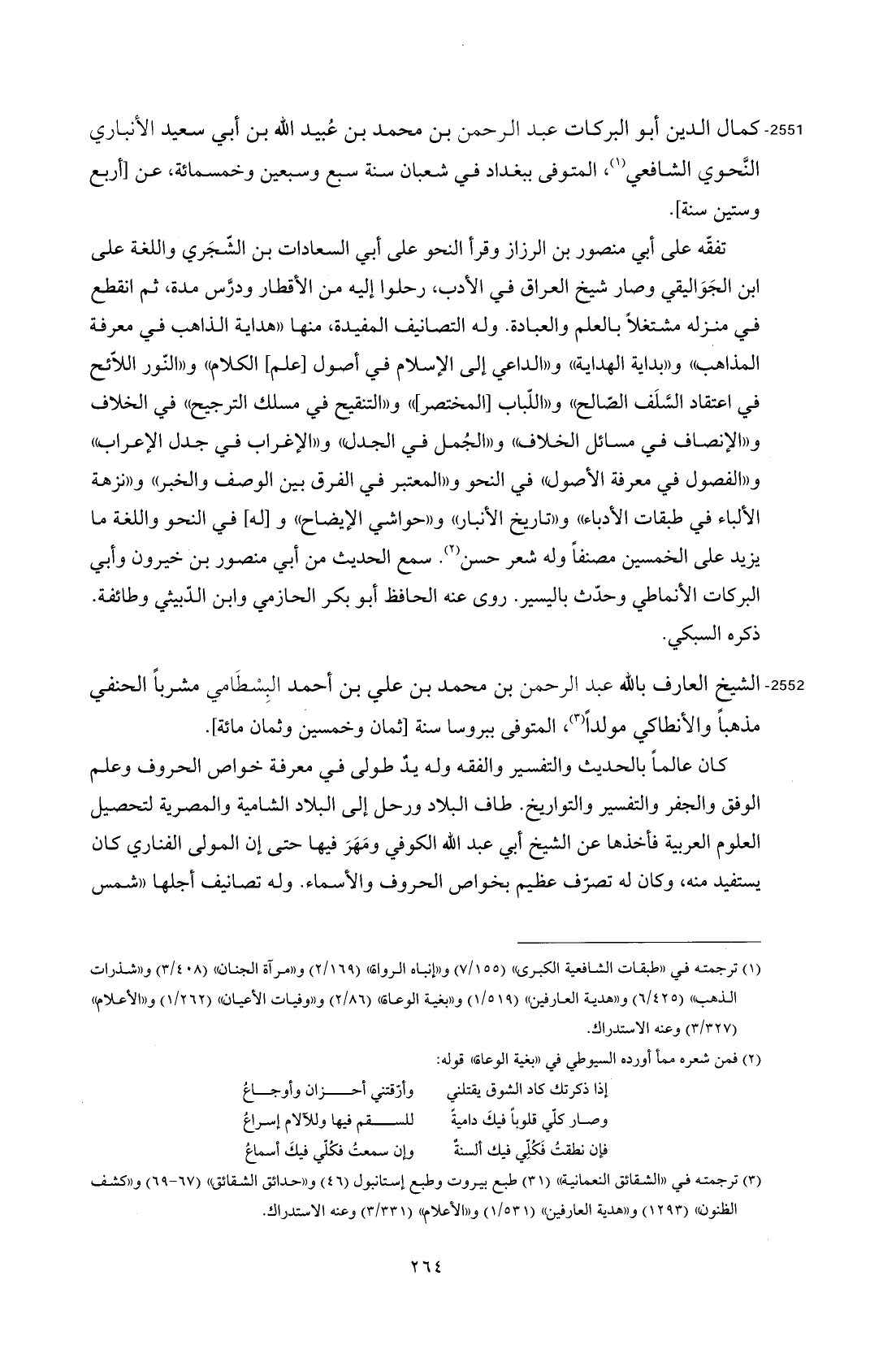2551 - كمال الدين أبو البركات عبد الرحمن بن محمد بن عُبيد الله بن أبي سعيد الأنباري النَّحوي الشافعي (¬1)، المتوفى ببغداد في شعبان سنة سبع وسبعين وخمسمائة، عن [أربع وستين سنة].