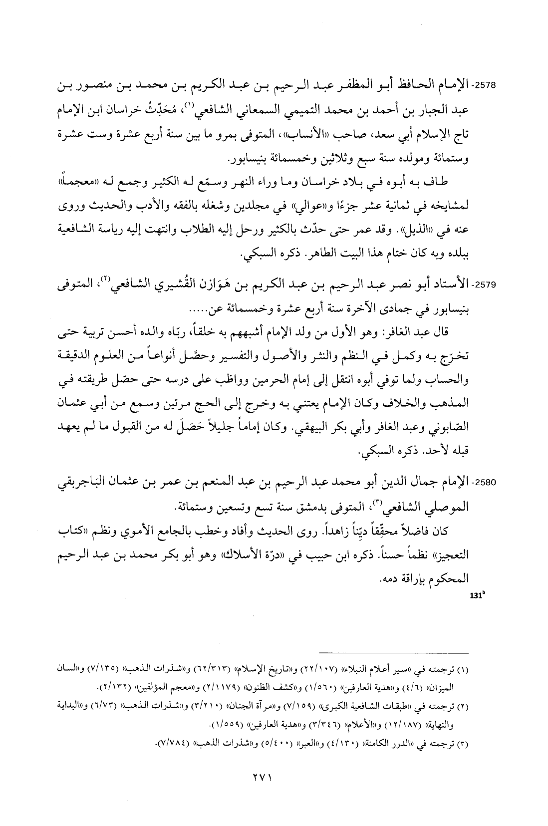 2579 - الأستاد أبو نصر عبد الرحيم بن عبد الكريم بن هَوَازن القُشيري الشافعي (¬2)، المتوفى بنيسابور في جمادى الآخرة سنة أربع عشرة وخمسمائة عن .....