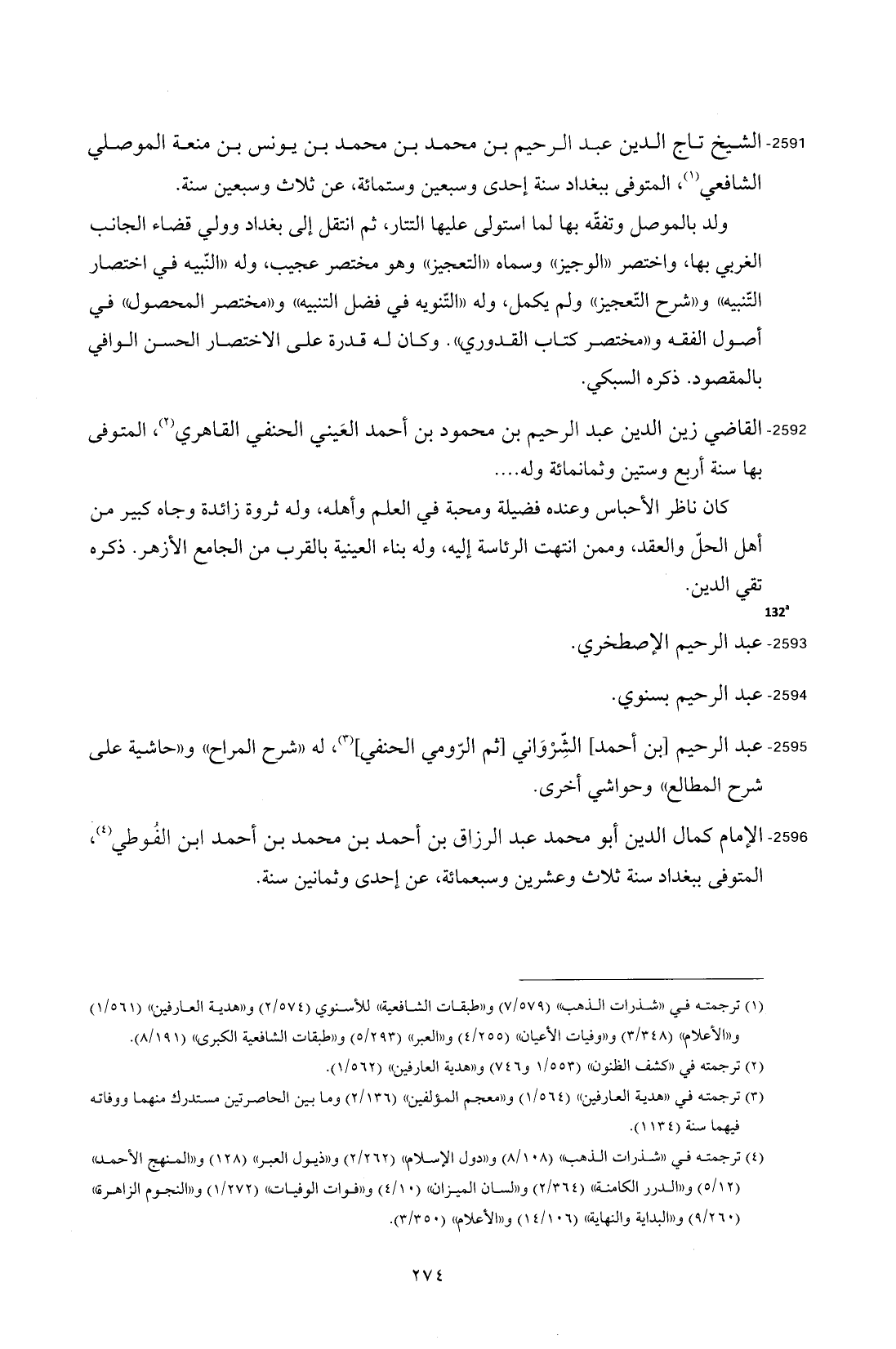 2596 - الإمام كمال الدين أبو محمد عبد الرزاق بن أحمد بن محمد بن أحمد ابن الفُوطي (¬4)، المتوفى ببغداد سنة ثلاث وعشرين وسبعمائة، عن إحدى وثمانين سنة.