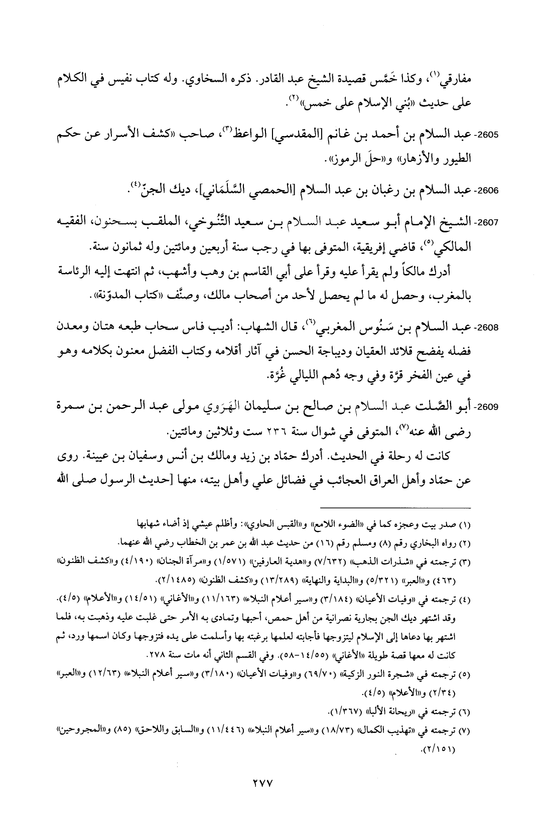 2606 - عبد السلام بن رغبان بن عبد السلام [الحمصي السَّلَمَاني]، ديك الجنّ (¬4).