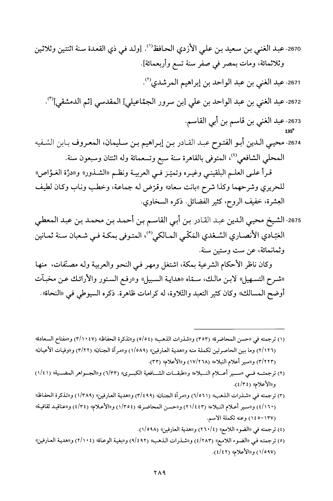 2674 - محيي الدين أبو الفتوح عبد القادر بن إبراهيم بن سليمان، المعروف بابن السَّفيه المحلي الشافعي (¬4)، المتوفى بالقاهرة سنة سبع وتسعمائة وله اثنتان وسبعون سنة.