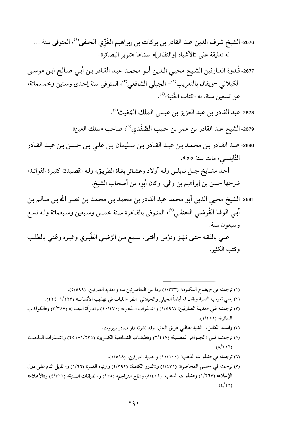 2680 - عبد القادر بن محمد بن عبد القادر بن سليمان بن علي بن حسن بن عبد القادر النَّابلسي، مات سنة 955.