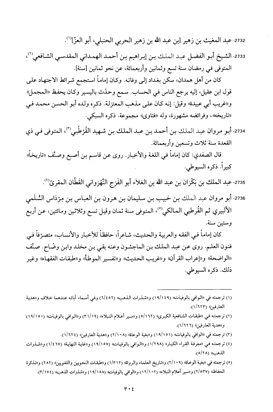 2734 - أبو مروان عبد الملك بن أحمد بن عبد الملك بن شهيد القُرْطُبي (¬3)، المتوفى في ذي القعدة سنة ثلاث وتسعين وأربعمائة.