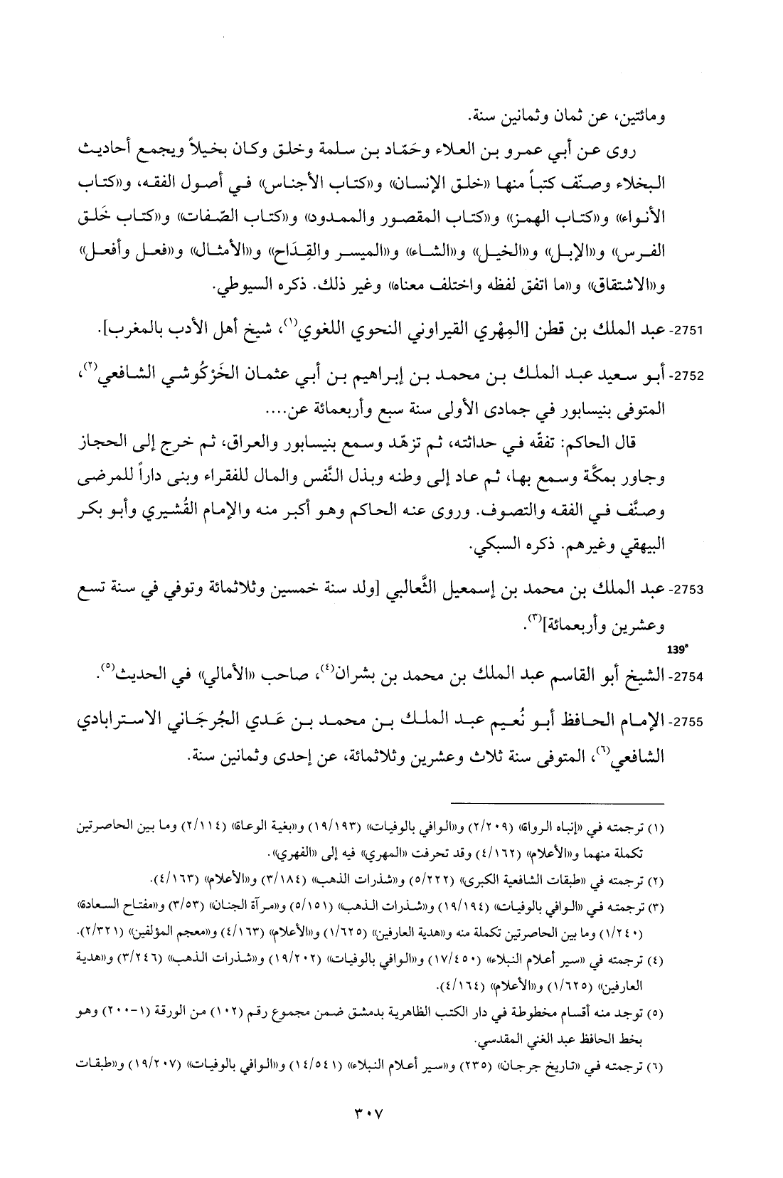 2753 - عبد الملك بن محمد بن إسمعيل الثَّعالبي [ولد سنة خمسين وثلاثمائة وتوفي في سنة تسع وعشرين وأربعمائة] (¬3).
