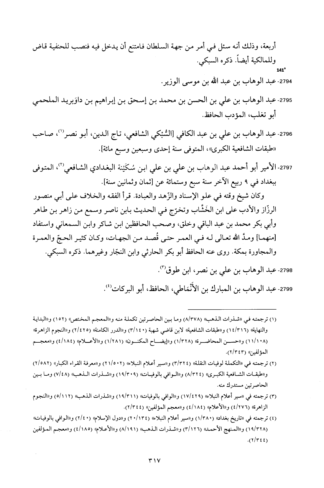 2798 - عبد الوهاب بن علي بن نصر، ابن طوق (¬3).