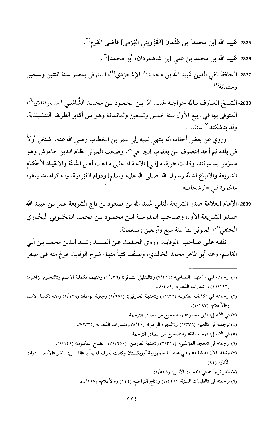 2838 - الشيخ العارف بالله خواجه عُبيد الله بن محمود بن محمد الشَّاشي السّمرقندي (¬6)، المتوفى بها في ربيع الأول سنة خمس وتسعين وثمانمائة وهو من أكابر الطريقة النقشبندية. ولد بتاشكند (¬7) سنة ....