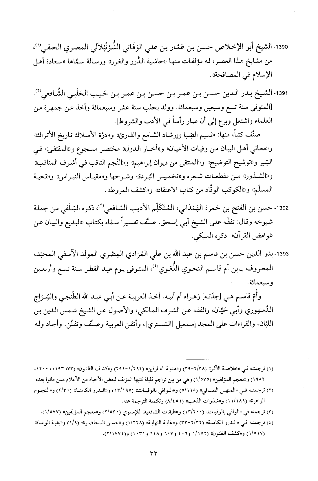 1390 - الشيخ أبو الإخلاص حسن بن عَمَّار بن علي الوَفَائي الشّرنْبُلاَلي المصري الحنفي (¬1)، من مشايخ هذا العصر، له مؤلفات منها "حاشية الدّرر والغرر" ورسالة سمَّاها "سعادة أهل الإسلام في المصافحة".