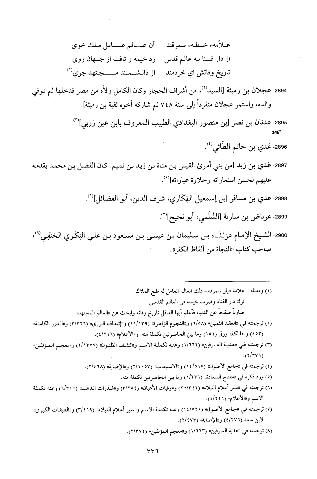 (¬1) ومعناه: علامة ديار سمرقند، ذلك العالم العامل له طبع الملاك