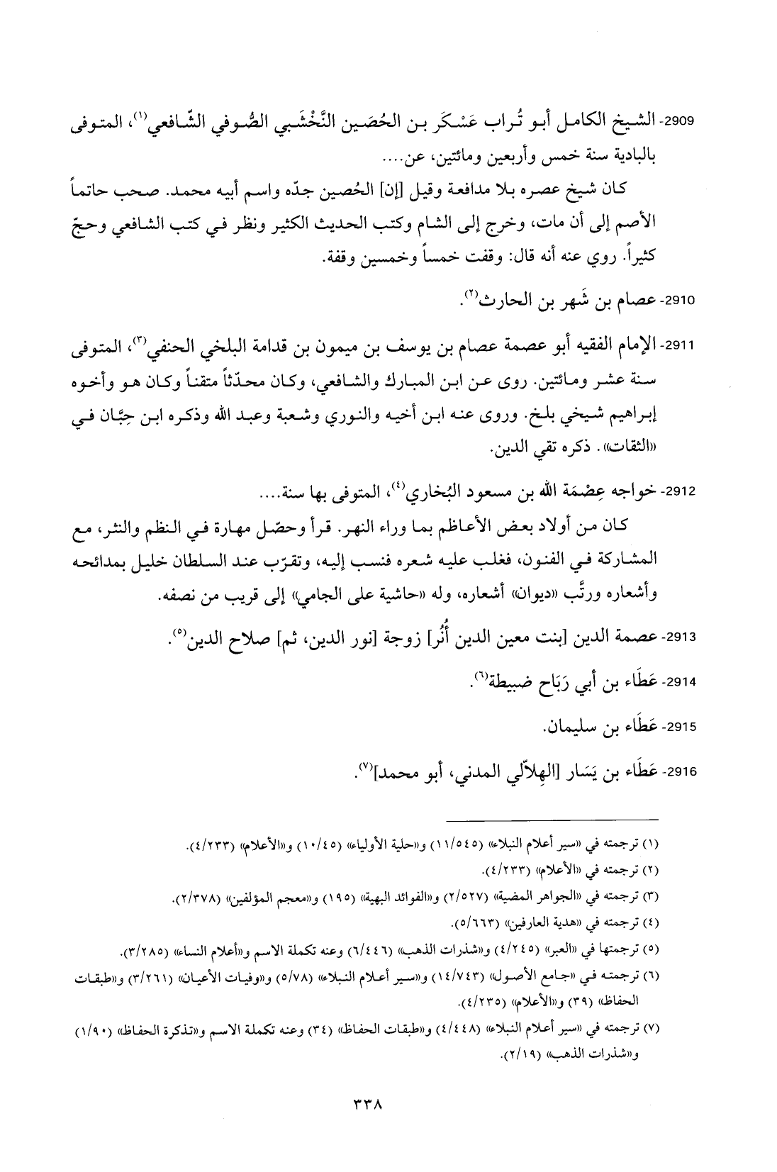 2911 - الإمام الفقيه أبو عصمة عصام بن يوسف بن ميمون بن قدامة البلخي الحنفي (¬3)، المتوفى سنة عشر ومائتين. روى عن ابن المبارك والشافعي، وكان محدّثًا متقنًا وكان هو وأخوه إبراهيم شيخي إلخ. وروى عنه ابن أخيه والنوري وشعبة وعبد الله وذكره ابن حِبَّان في "الثِّقات". ذكره تقي الدين.