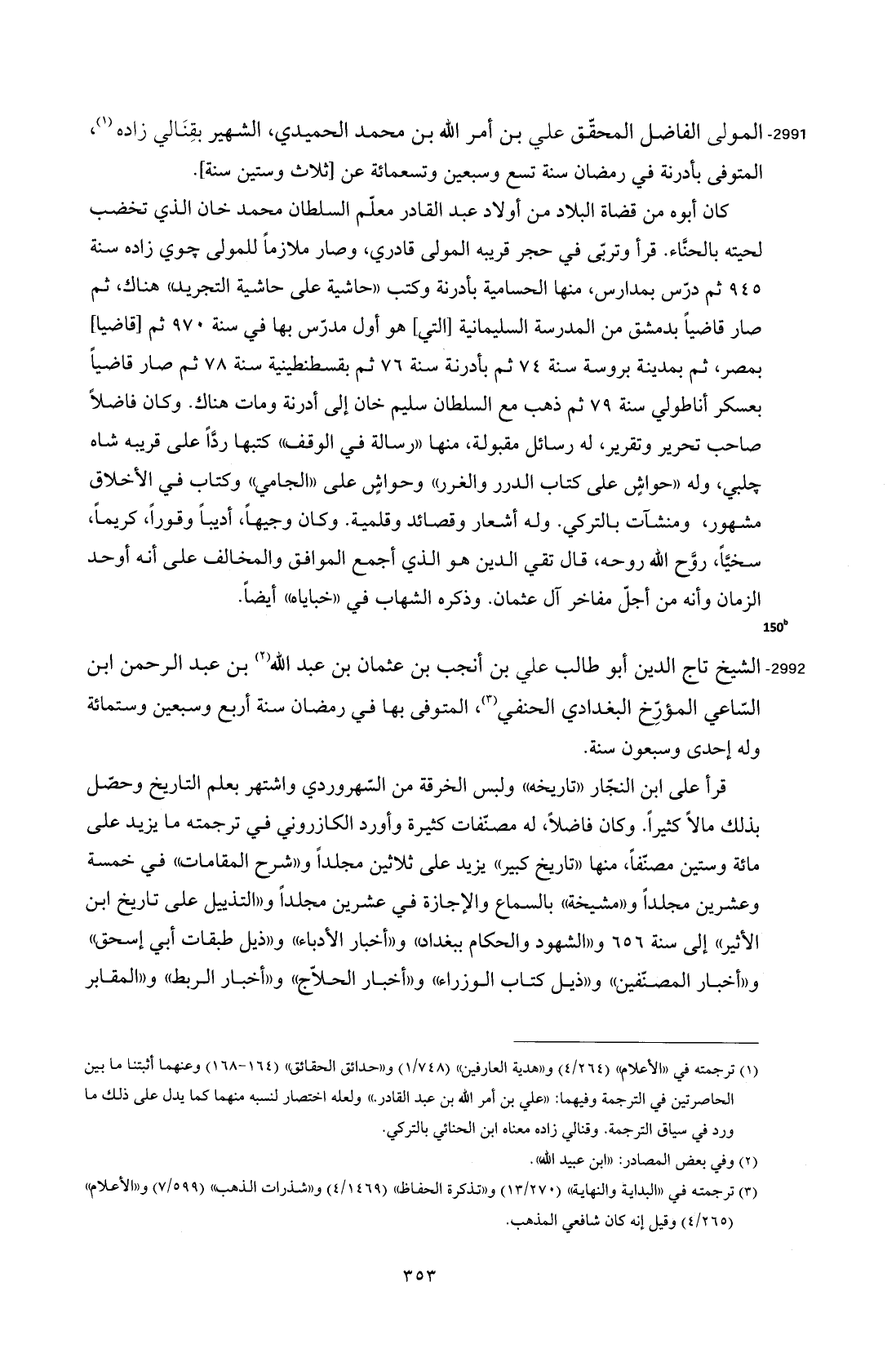 2991 - المولى الفاضل المحقّق علي بن أمر الله بن محمد الحميدي، الشهير بقِنَالي زاده (¬1)، المتوفى بأدرنة في رمضان سنة تسع وسبعين وتسعمائة من [ثلاث وستين سنة].