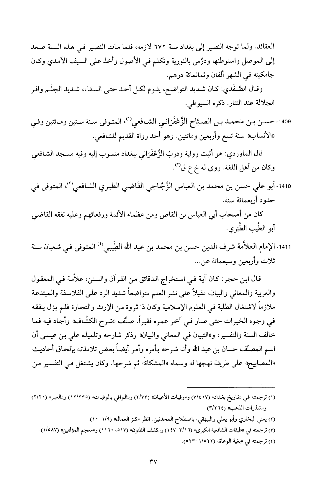 1411 - الإمام العلاَّمة شرف الدين حسن بن محمد بن عبد الله الطِّيبي (¬4) المتوفى في شعبان سنة ثلاث وأربعين وسبعمائة عن ...