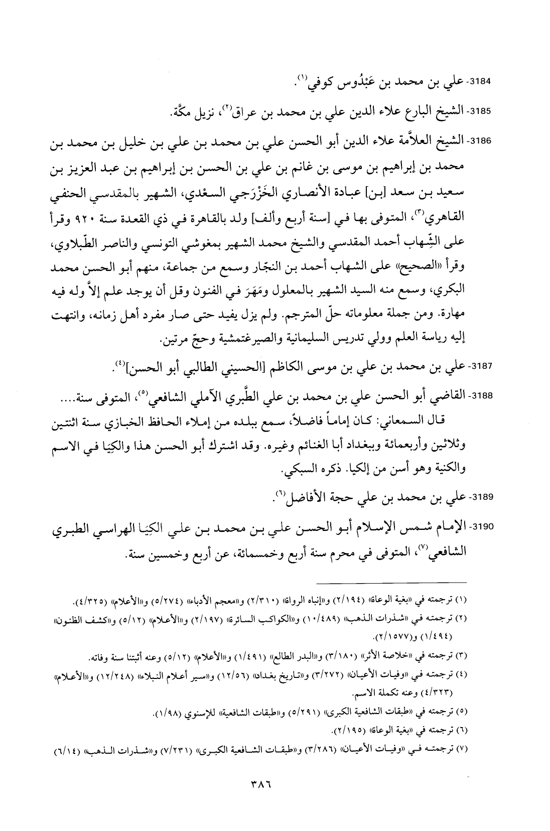 3188 - القاضي أبو الحسن علي بن محمد بن علي الطَّبري الآملي الشافعي (¬5)، المتوفى سنة ....