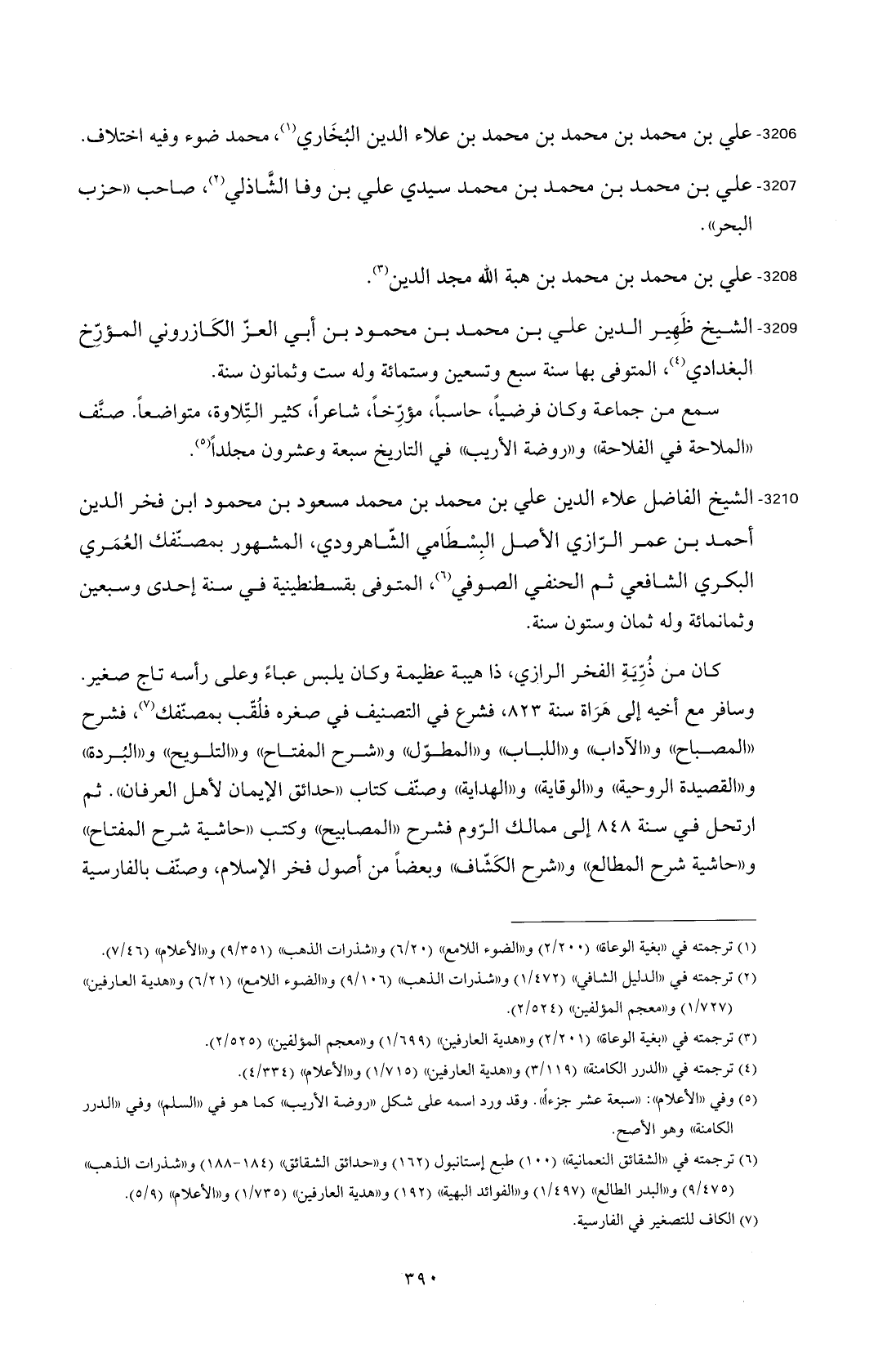 3210 - الشيخ الفاضل علاء الدين علي بن محمد بن محمد مسعود بن محمود ابن فخر الدين أحمد بن عمر الرّازي الأصل البِسْطَامي الشّاهرودي، المشهور بمصنفّك العُمَريُّ البكري الشافعي ثم الحنفي الصُّوفي (¬6)، المتوفى بقسطنطينية في سنة إحدى وسبعين وثمانمائة وله ثمان وستون سنة.