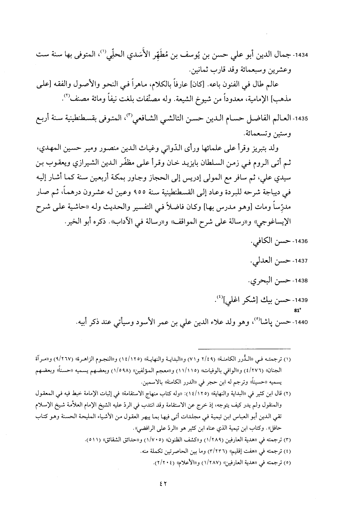 1434 - جمال الدين أبو علي حسن بن يُوسف بن مُطَهِر الأَسَدي الحلِّي (¬1)، المتوفى بها سنة ست وعشرين وسبعمائة وقد قارب ثمانين.