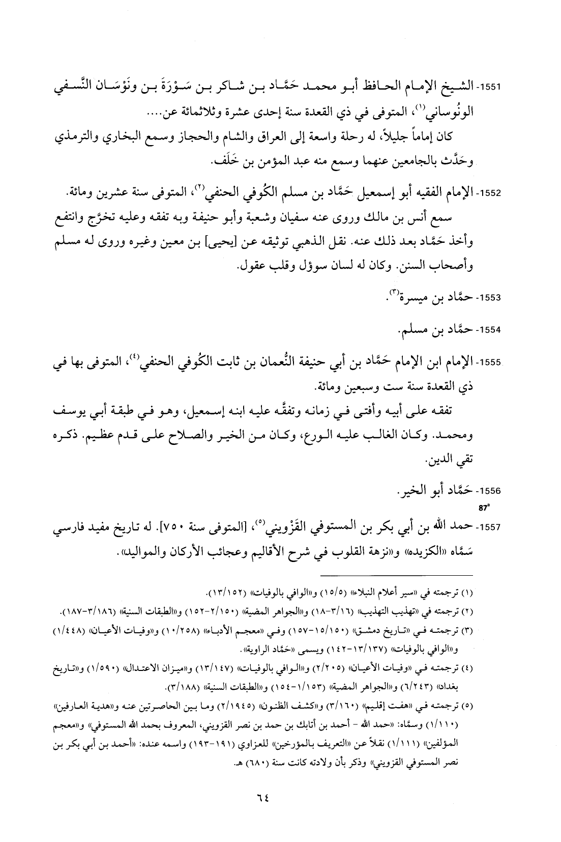 1551 - الشيخ الإمام الحافظ أبو محمد حَمَّاد بن شاكر بن سَوْرَةَ بن ونَوْسَان النَّسفي الونُوساني (¬1)، المتوفى في ذي القعدة سنة إحدى عشرة وثلاثمائة عن ....