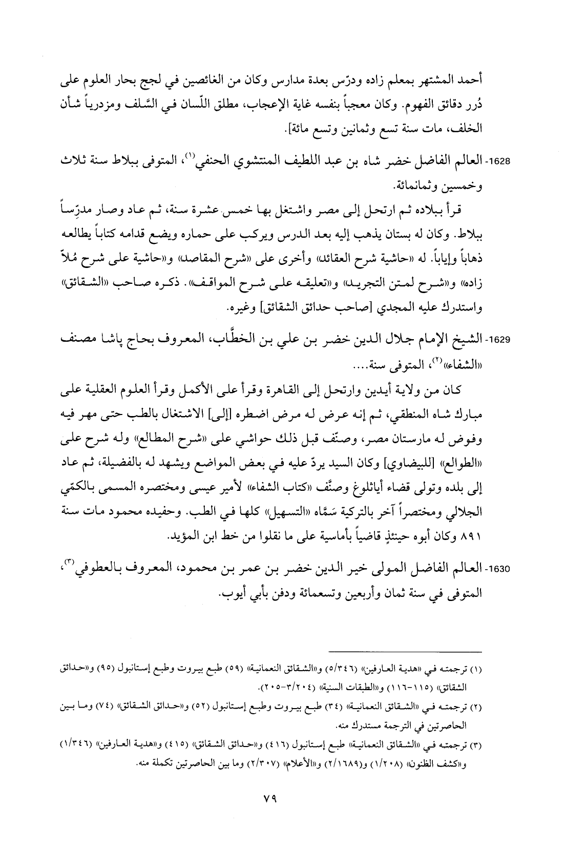 1629 - الشيخ الإمام جلال الدين خضر بن علي بن الخطَّاب، المعروف بحاج باشا مصنف "الشفاء" (¬2)، المتوفى سنة ....