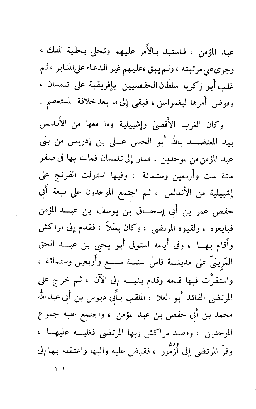 عبد المؤمن فاستبد بِالْأَمر عَلَيْهِم وتحلى بحلية الْملك وَجرى على مرتبته وَلم يبْق عَلَيْهِم غير الدُّعَاء على المنابر ثمَّ غلب أَبُو زَكَرِيَّا سُلْطَان الحفصيين بإفريقية على تلمسان وفوض أمرهَا ليغمراسن فبقى الى مَا بعد خلَافَة المستعصم