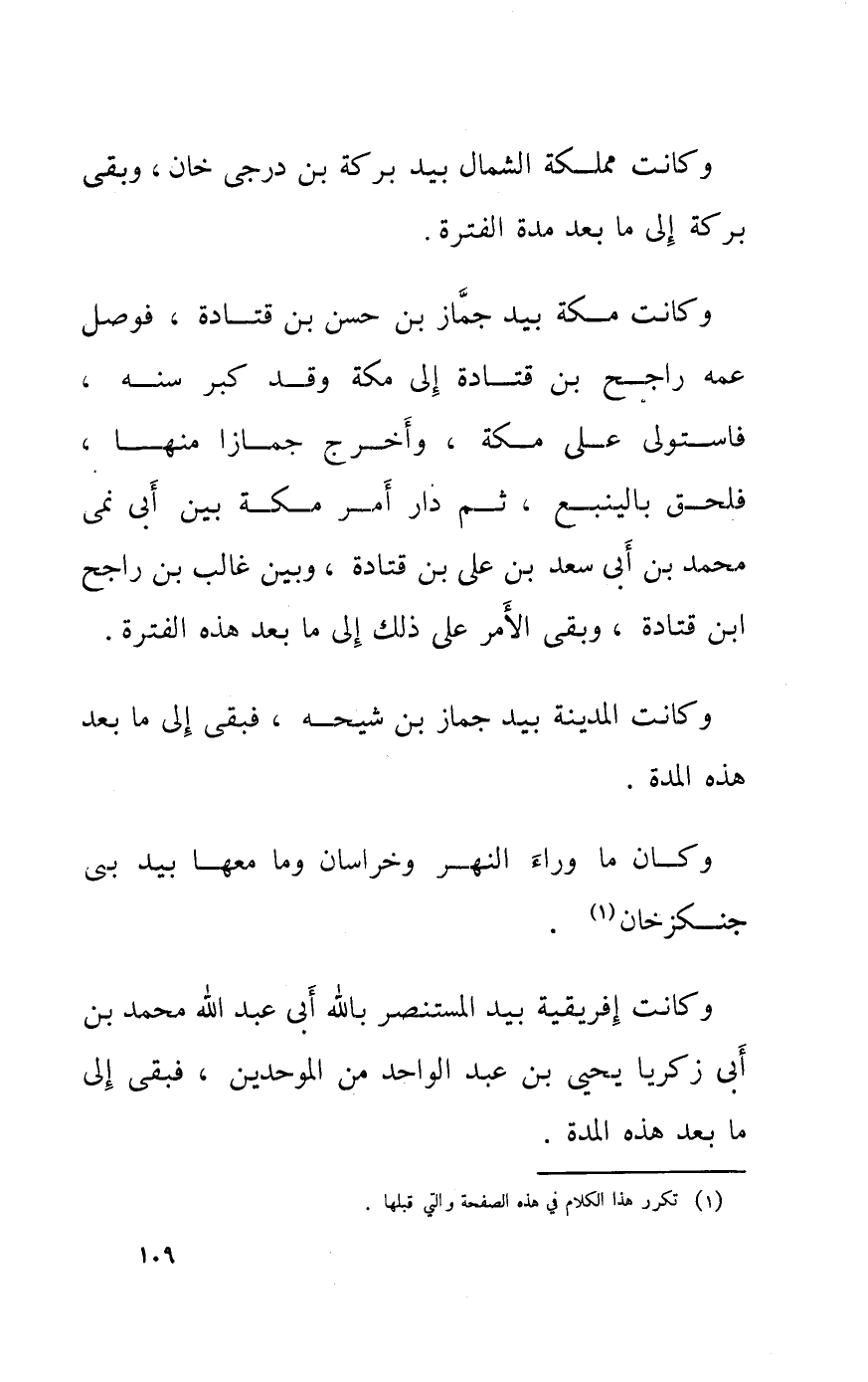 وَكَانَ مَا وَرَاء النَّهر وخراسان وَمَا مَعهَا بيد بني جنكزخان