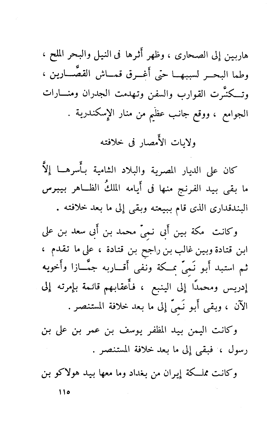 كَانَ على الديار المصرية والبلاد الشامية بأسرها إِلَّا مَا بقى بيد الفرنج مِنْهَا فِي أَيَّامه الْملك الظَّاهِر بيبرس البندقدارى الَّذِي قَامَ ببيعته وبقى الى مَا بعد خِلَافَته