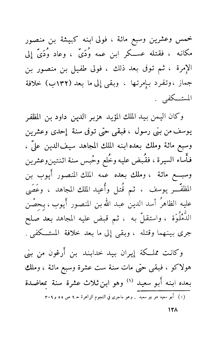 وَكَانَت مملكة إيران بيد خدابند بن أرغون من بنى هولاكو فبقى حَتَّى مَاتَ سنة سِتّ عشرَة وَسبع مائَة وَملك بعده ابْنه أَبُو سعيد وَهُوَ ابْن ثَلَاث عشرَة سنة بمعاضده