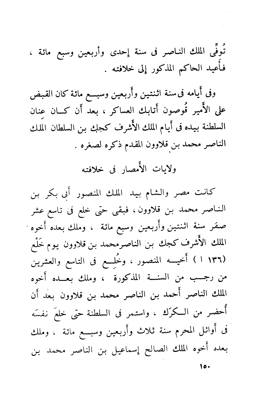 كَانَت مصر وَالشَّام بيد الْملك الْمَنْصُور أَبى بكر بن النَّاصِر مُحَمَّد بن قلاوون فبقى حَتَّى خلع فِي تَاسِع عشر صفر سنة اثْنَتَيْنِ وَأَرْبَعين وَسبع مائَة وَملك بعده أَخُوهُ الْملك الْأَشْرَف كجك بن النَّاصِر مُحَمَّد بن قلاوون يَوْم خلع أَخِيه الْمَنْصُور وخلع فِي التَّاسِع وَالْعِشْرين من رَجَب من السّنة الْمَذْكُورَة وَملك بعده أَخُوهُ الْملك النَّاصِر أَحْمد بن النَّاصِر مُحَمَّد بن قلاوون بعد أَن أحضر من الكرك وَاسْتمرّ فِي السلطنة حَتَّى خلع نَفسه فِي أَوَائِل الْمحرم سنة ثَلَاث وَأَرْبَعين وَسبع مائَة وَملك بعده أَخُوهُ الْملك الصَّالح إِسْمَاعِيل بن النَّاصِر مُحَمَّد بن