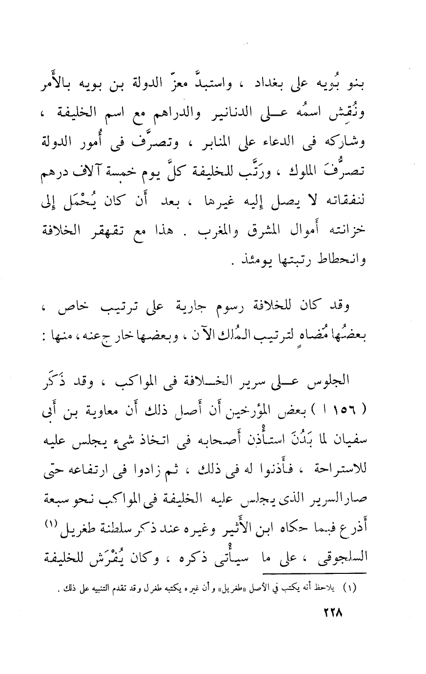 وَقد كَانَ للخلافة رسوم جاريه على تَرْتِيب خَاص بعضعها مضاه لتريب الْملك الْآن وَبَعضهَا خَارج عَنهُ مِنْهَا