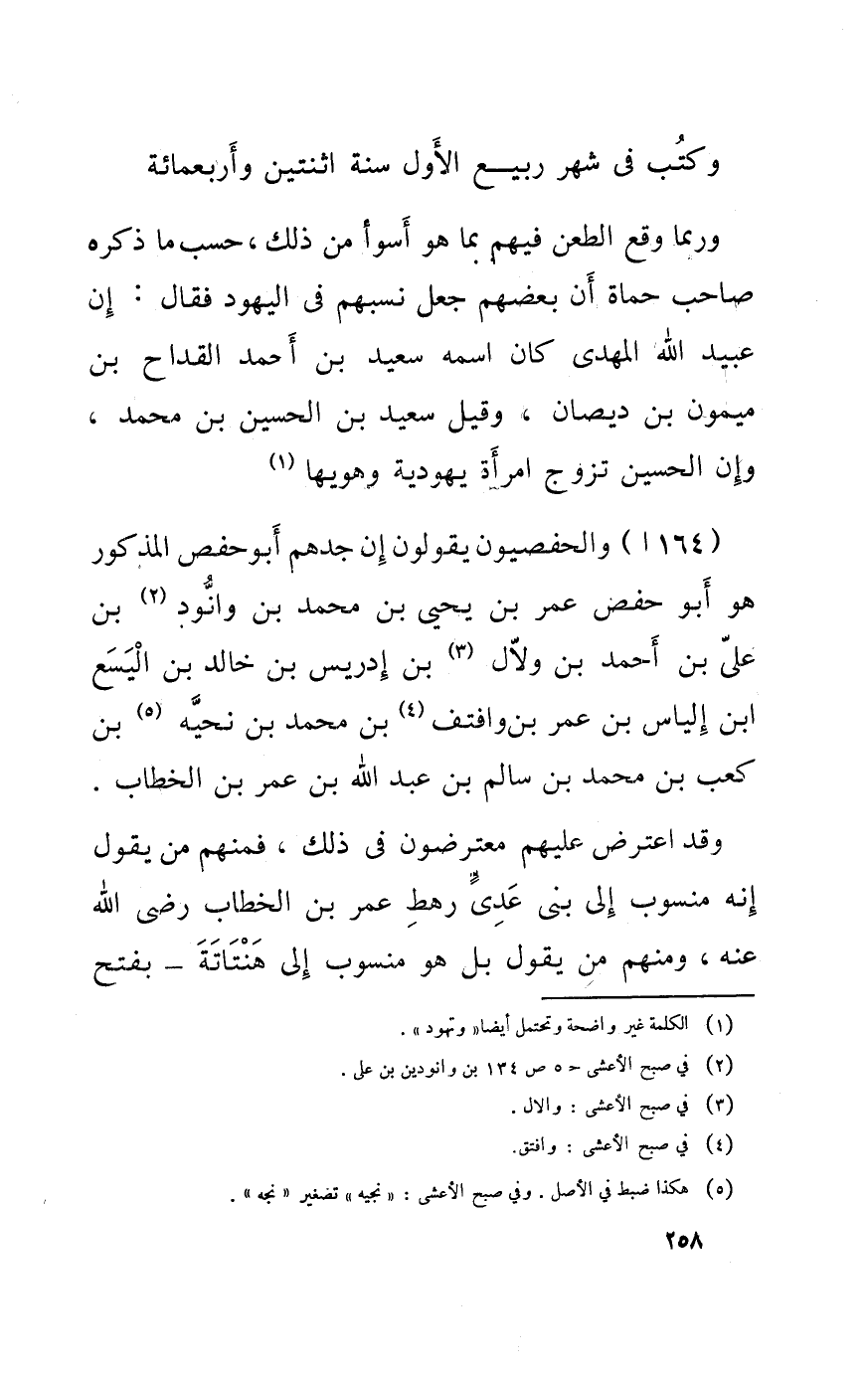 وَرُبمَا وَقع الطعْن فيهم بِمَا هُوَ أَسْوَأ من ذَلِك حسب مَا ذكره صَاحب حماة أَن بَعضهم جعل نسبهم فِي الْيَهُود فَقَالَ إِن عبيد الله المهدى كَانَ اسْمه سعيد بن أَحْمد القداح بن مَيْمُون بن ديصان وَقيل سعيد بن الْحُسَيْن بن مُحَمَّد وَإِن الْحُسَيْن تزوج امْرَأَة يَهُودِيَّة وهويها