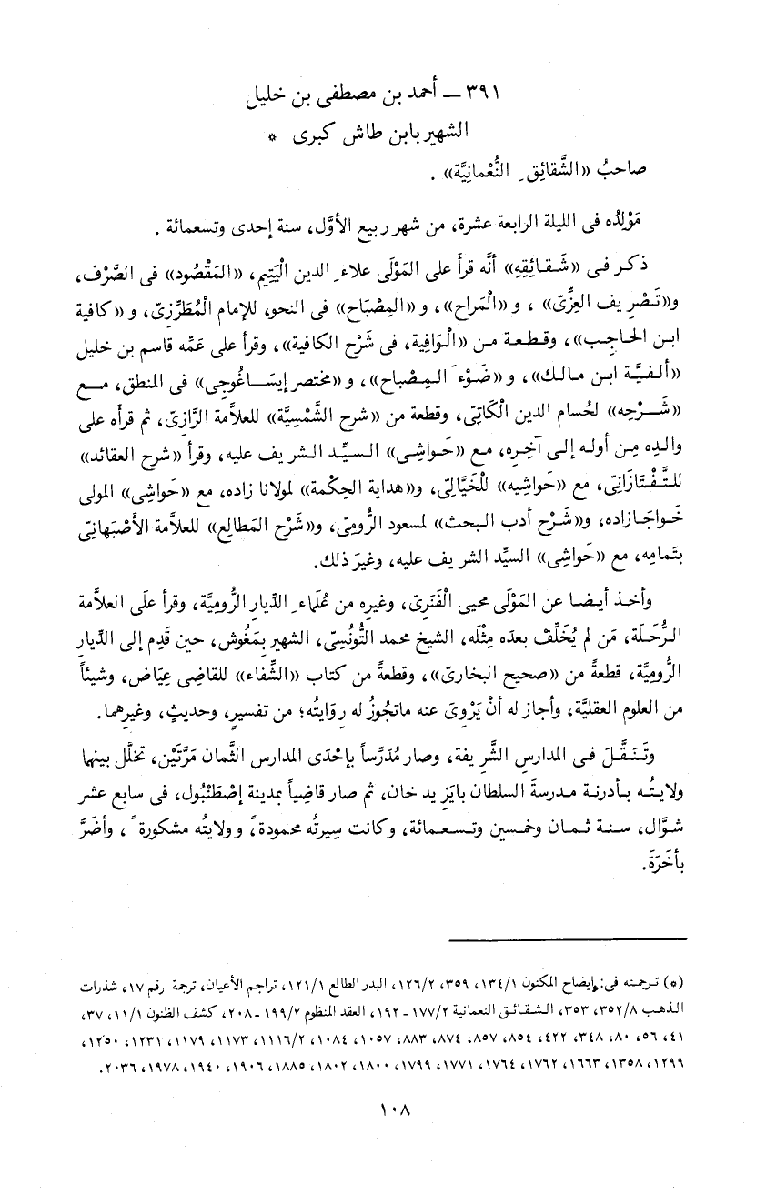 391 - أحمد بن مصطفى بن خليل الشهير بابن طاش كبرى *