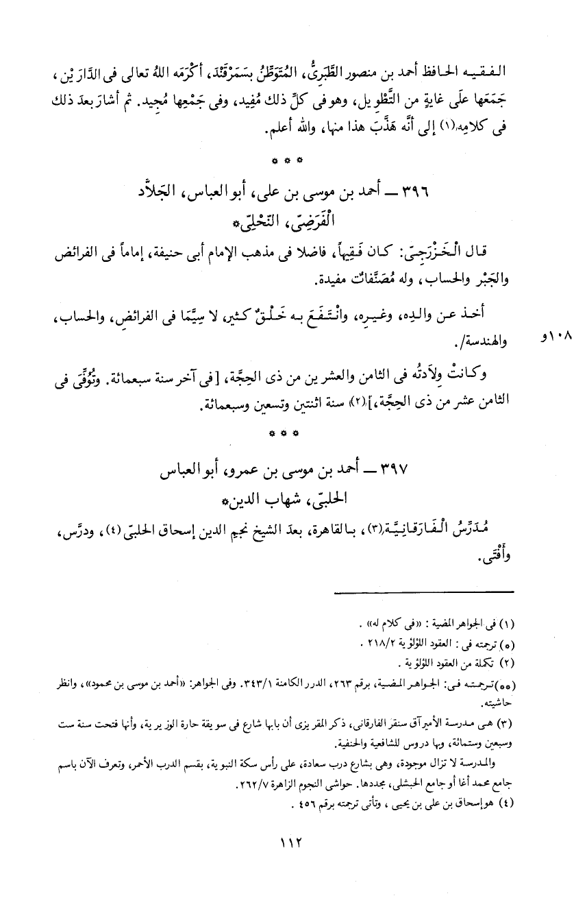 396 - أحمد بن موسى بن على، أبو العباس، الجلاّد الفرضىّ، النّحلىّ *