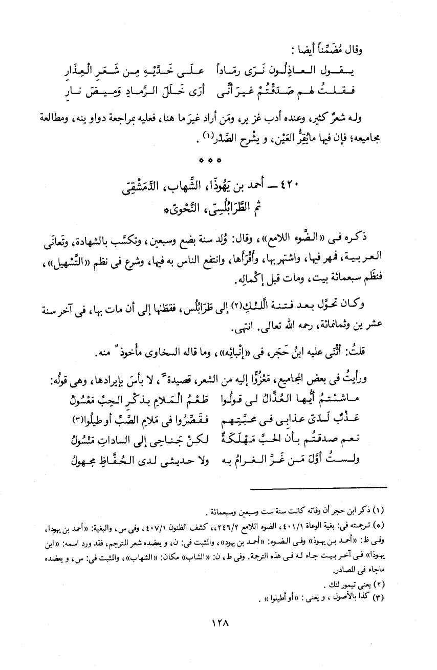 420 - أحمد بن يهوذا، الشّهاب، الدّمشقىّ ثم الطّرابلسىّ، النّحوىّ *