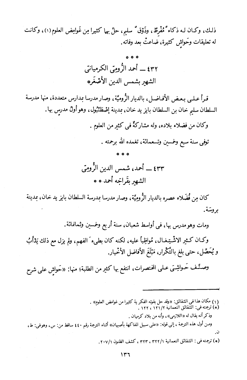 432 - أحمد الرّومىّ الكرميانىّ الشهير بشمس الدين الأصغر *