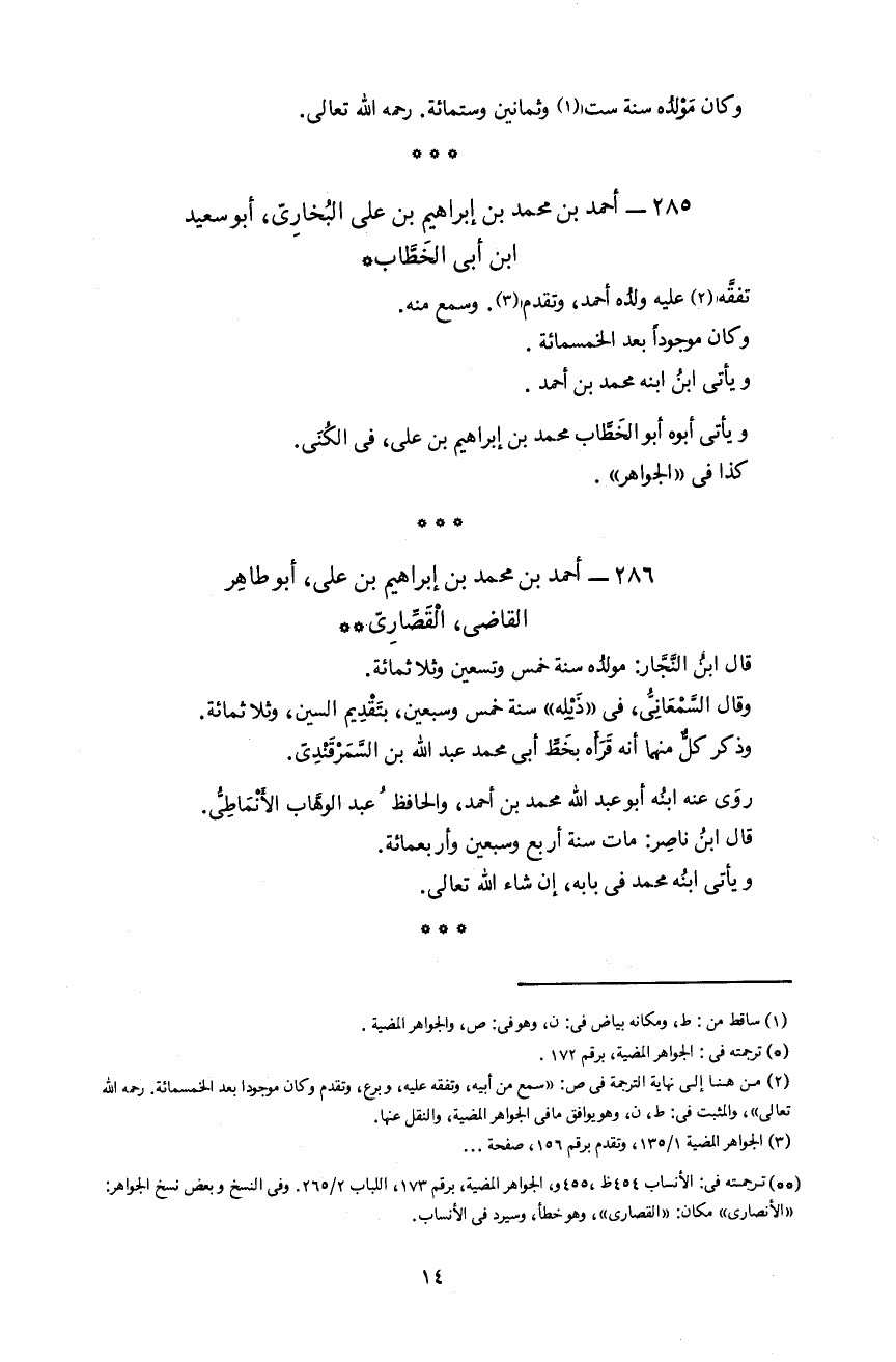 286 - أحمد بن محمد بن إبراهيم بن على، أبو طاهر القاضى، القصّارىّ **