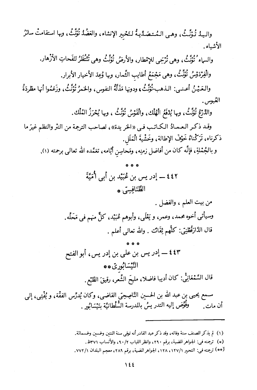 1) لم يذكر المصنف سنة وفاته، و قد ذكر عبد القادر أنه توفى سنة اثنتين و خمسين و خمسمائة.