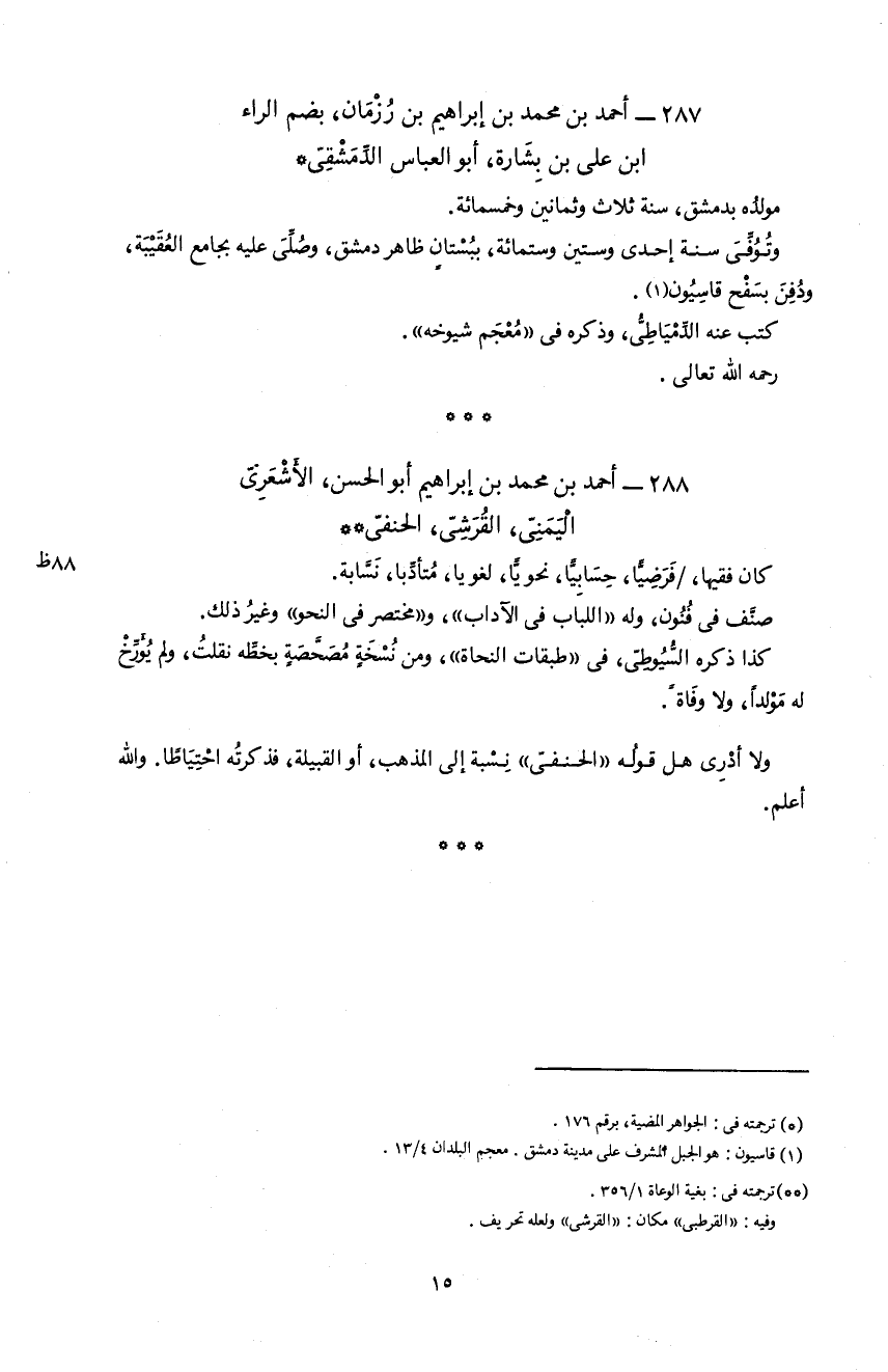 288 - أحمد بن محمد بن إبراهيم أبو الحسن، الأشعرىّ اليمنىّ، القرشىّ، الحنفىّ **