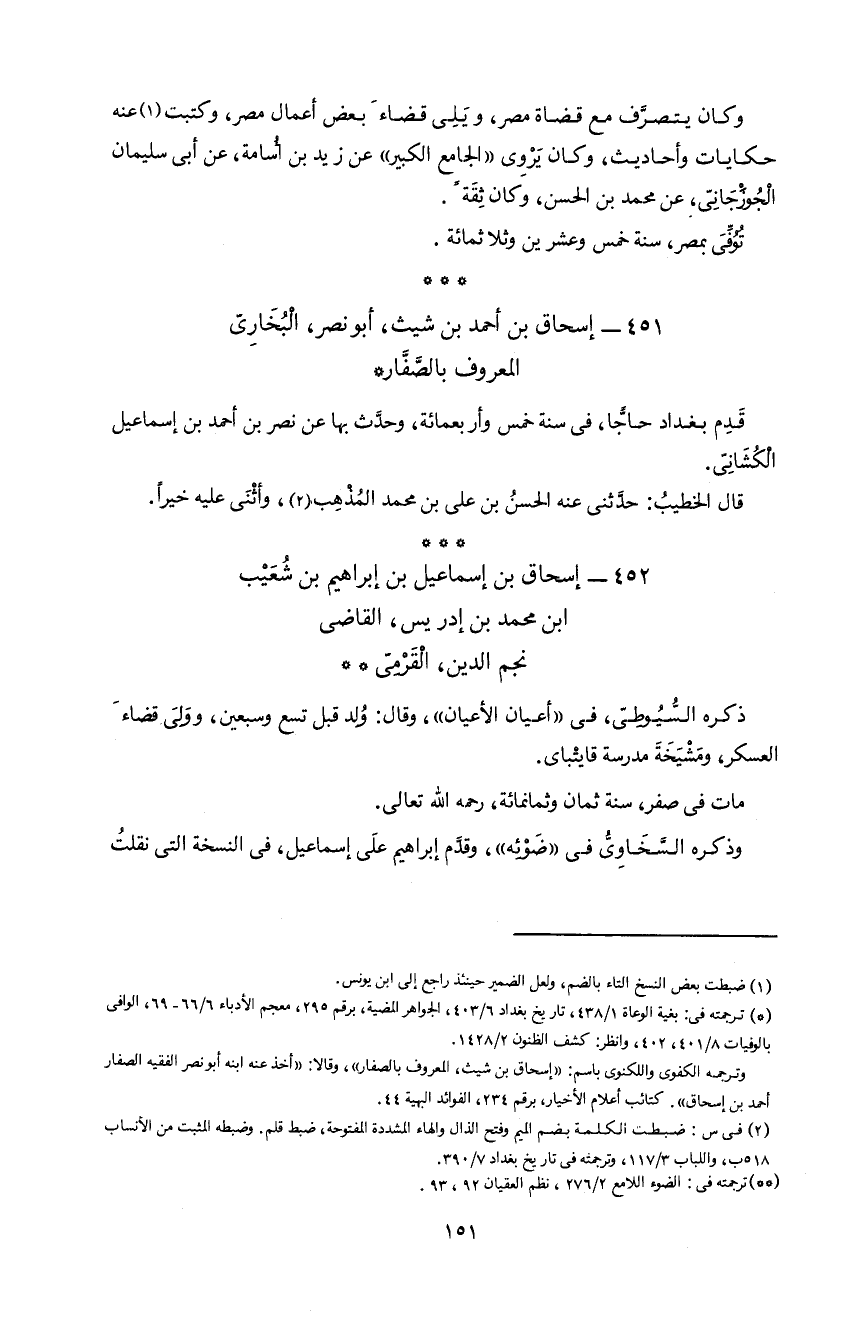 451 - إسحاق بن أحمد بن شيث، أبو نصر، البخارىّ المعروف بالصّفّار *