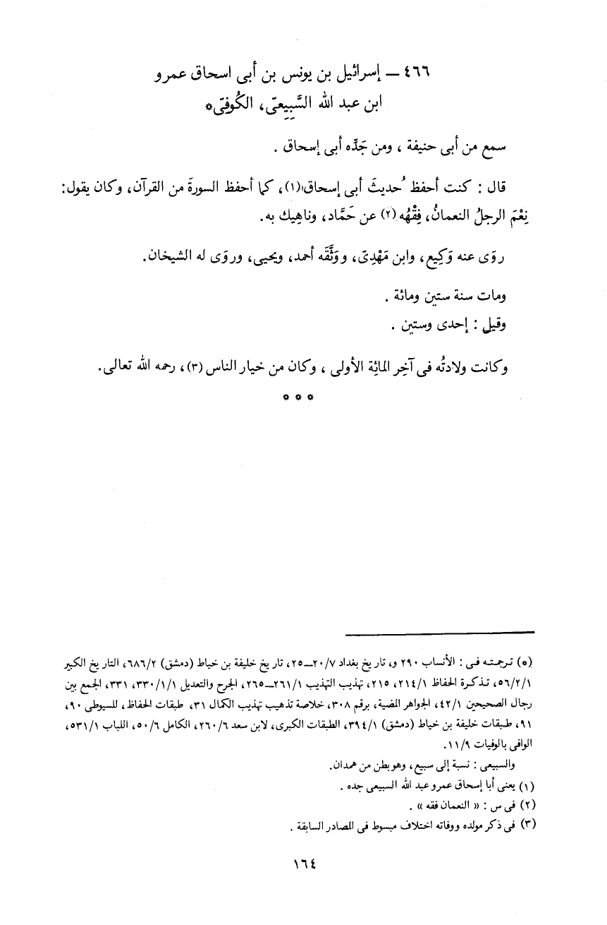 466 - إسرائيل بن يونس بن أبى اسحاق عمرو ابن عبد اللّه السّبيعىّ، الكوفىّ *