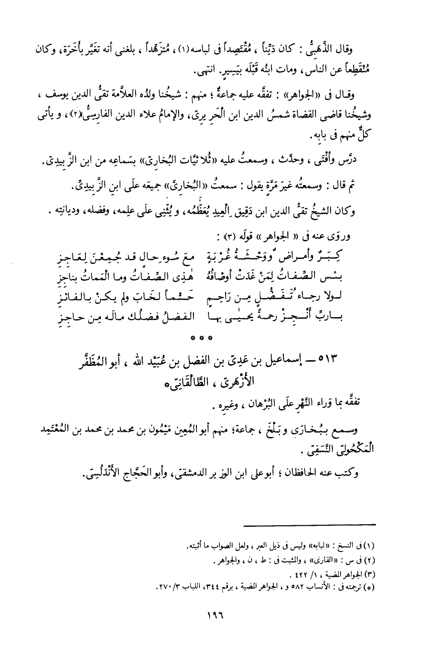 513 - إسماعيل بن عدىّ بن الفضل بن عبيد اللّه، أبو المظفّر الأزهرىّ، الطّالقانىّ *