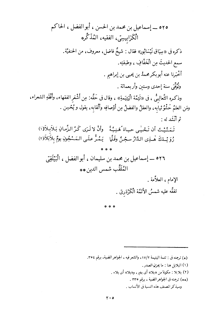 526 - إسماعيل بن محمد بن سليمان، أبو الفضل، البيلقىّ الملقّب شمس الدين **